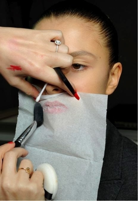 21. To set your lipstick so it LASTS. Hold a tissue over your lips and lightly dust translucent powder over the tissue. The powder will ever so lightly fall on your lips through the tissue, and it will set your lip color the same way it sets your makeup when you use it on your face.