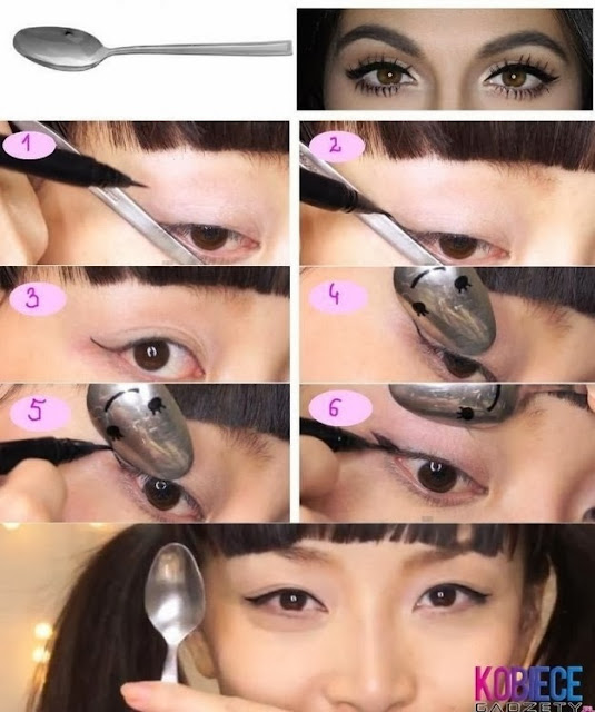 11. Use a spoon to get the perfect wing shape for your eyeliner.