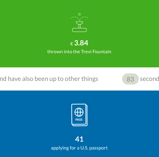 As I was browsing the crap out of the internet per usual, looking for statistics on how many solo travelers there are and where people are opting to travel to right now, I found this cool site that offers real time travel statistics that literally change every second! It’s pretty amusing, and definitely interesting, check it out!