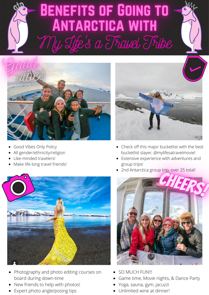 Sign up NOW for the trip of a life time to ANTARCTICA on November 21 – Dec 1, 2022 with #MyLifesATravelTribe and Chimu Adventures!