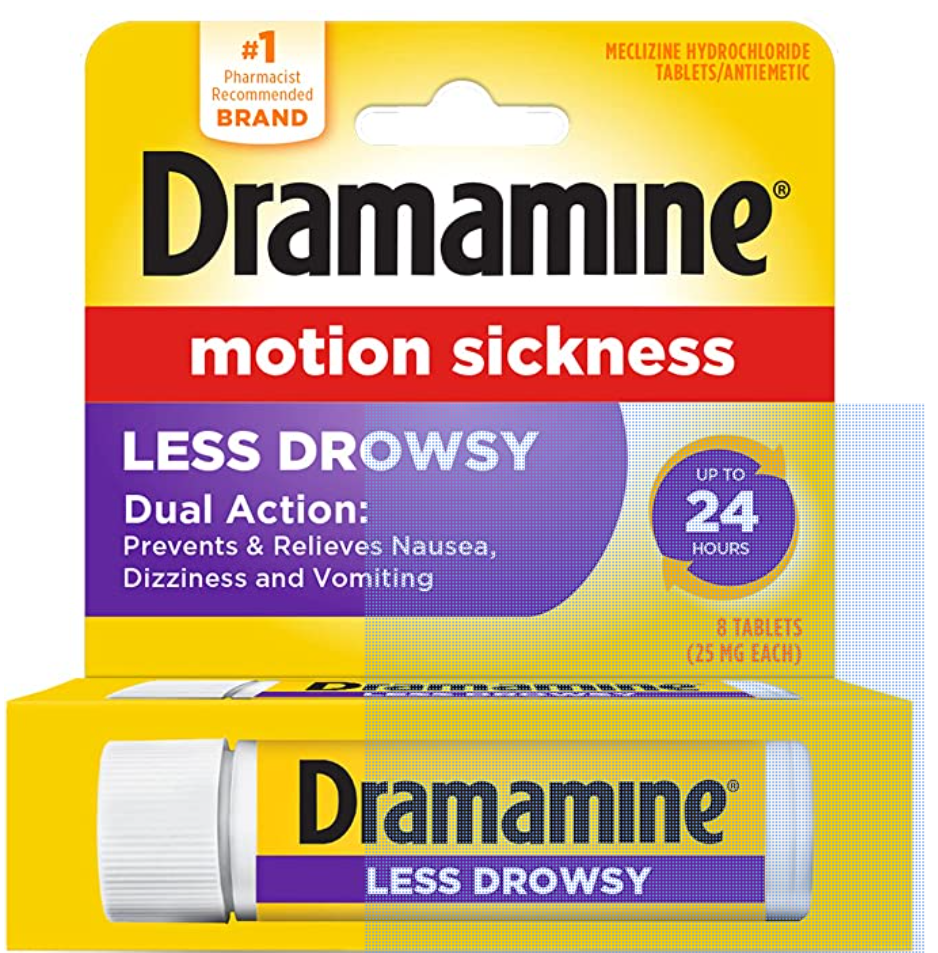I’d highly recommend getting less-drowsy Dramamine and regular Dramamine as well, in case you want to just pass out.