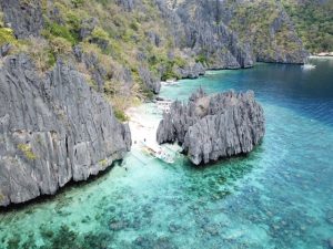If you go out towards the road, away from the parking lot and main beach area, you’ll get this stunning panoramic from the small cliff above that overlooks a nook of white sand and then endless neon blue waters.