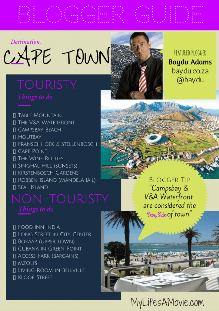 Get to Food Inn India to buy wholesome meals and experience the Indian influences in Cape Town at very affordable prices. Take a walk down Long Street in City Centre in Cape Town to experience the vibe of food places, clubs, pubs, bars etc. See the colourful houses in BoKaap (literally meaning Upper Town) which is a few minutes walk from Central Town. Go to a place called Cubana in Green Point for some Afro house music and food. We have tons of malls and shopping centres. We have tons of restaurants and coffee shops. Watch a sunset at Llandudno or Campsbay or even in Strand. Go to Access Park opposite Kenilworth Centre to get some bargains. Watch rugby or cricket at the infamous Newlands Rugby and Newlands Rugby Stadiums. Watch a soccer game at Cape Town Stadium. Do some Township tours or go to a place called Mzoli’s to experience a township vibe. Go to a lovely club called Living Room in an area called Bellville (dress smartly). Have a Bar One (chocolate name brand) Cheesecake from a place called Arnold’s in Kloof Street. Kloof Street is an extension of Long Street going toward the mountain and that place has a few eating and dancing places.