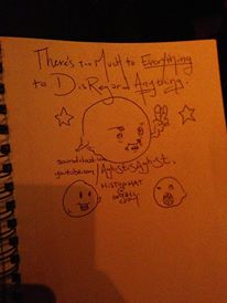Amidst the random items including old school headphones, and a purple vibrator, I found a mini sketchpad that Boom Shaka Laka was very stern on selling for $1 (although it probably sells for $10), so I gave him $5, but in exchange asked him to write something in it. What he wrote made 0 sense, along with whatever he was ranting about, but it gave me an idea to do something I’ve always wanted to do but usually can’t convince anyone to do with me…interview homeless people.