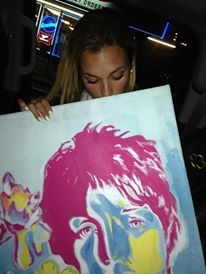 The kid had just arrived a few days ago from somewhere in the Midwest and was chasing his dream of becoming a musician in Hollywood. I informed him that he was in the WRONG part of Hollywood and that I hated his obnoxious little big lady friend who he should avoid immediately. Somehow my friend got swindled into buying one of the paintings for $120, then a random guy came up and took a bite of my pizza while I was waiting for my journal entry from guitar kid, and when I went to go throw away the rest of the pizza, guitar kid graciously asked for it which I gave with him along with my Coke…which I instantly and awkwardly announced was Diet Coke, not like “coke”.