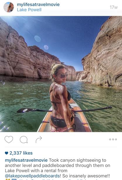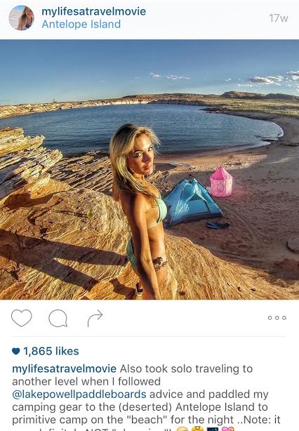 Thereโs a lot going on here. First of all, I paddle boarded all of my camping gear to a deserted island in Arizona because the guy at the paddle board shop said it would be โa great adventureโ, and since I was pissed that the dude I was dating had just crashed my road trip then left, I figured, โf*ck it, why the hell notโ. That โglowโ on my skin is from the hour it took me to get the stupid blue two-person tent up by myself, and the pink princess tent was brought specifically for my amusement and photos. Yes, that is a knife in my bikini, yes, my left arm is again holding my phone with a preview of shot, and yes, I was scared shitless the second it got dark outside.
