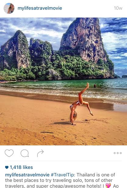 This is the product of an attempted handstand-shot on Railay Beach in Thailand. I have my GoPro on a timer, and have the stick shoved in the sand and propped up by beer bottles. That being said, I was also drinking, and extremely rusty on my gymnastics skills, so couldnโt keep my legs straight up for the life of me. I believe my mother even said, โWow, I had no idea you could even still do that!โ Also, like usual, I was extremely sunburnt. A few days later I got my debit and credit card stolen, had to fly Malaysia Airlines (it was empty), and still had a week left traveling sunburnt and solo in Australia.