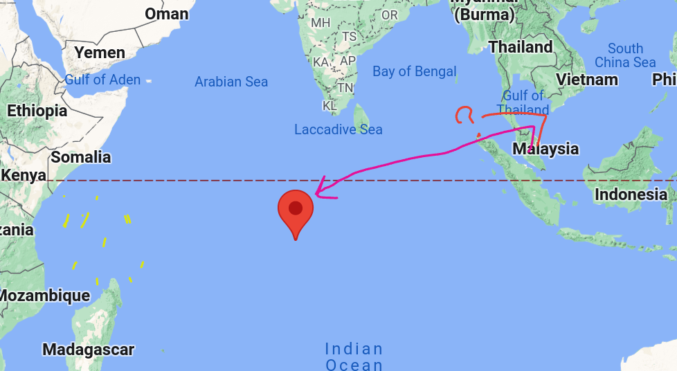 Why do I know about Diego Garcia? Great question. As a traveler who doesn’t like the typical touristy spots, I have a tendency to zoom in on the map and search for places I’ve never heard of. This was obviously what I did when I heard allegations that the “missing plane” went west.