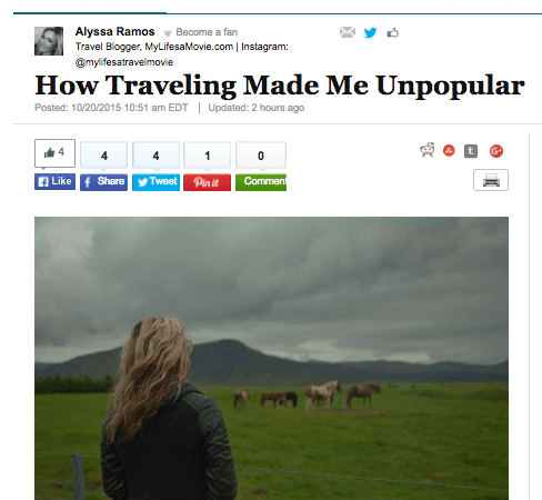 via The Huffington Post by Alyssa Ramos When I tell people I’m a travel blogger, there’s a fairly good chance they’ll either question how I make money from it, or say something along the lines of, “You get paid to travel? How do I sign up for that?” If they say nothing at all, that usually means they think I’m full of shit and have...